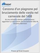Canzona d'un piagnone pel bruciamento delle vanita nel carnevale del 1498 : da una rarissima stampa contemporanea : agguintavi La descrizione del bruciamento fatta da Girolamo Benivieni .— : Presso gli Eredi Grazzini, 1864 .— 45 с. — Lang: ita .— URL: https://rucont.ru/efd/114648 (дата обращения: 13.11.2025)