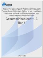 Hagen, F.H. Gesammlabenleuer :. 3 Band / Von Jakob Appet, Dietrich von Glatz, dem Fraudenleeren Heinz dem Kellner [и др] , meizt zum erstenmal gedruckt und herausgegeben von Friedrich Heinrich von der Hagen; F.H. Hagen .— : J. G. Cotta, 1850 .— 927 с. — Lang: ger .— URL: https://rucont.ru/efd/126932 (дата обращения: 18.11.2025)