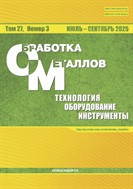 Ежеквартальный научно-технический и производственный журнал «Обработка металлов (технологияоборудованиеинструментыпубликует: материалы о прогрессивном оборудовании и инструментах для металло- и деревообработки, слесарно-монтажных, строительных и малярных работах, о достижениях в области их разработки и авангардных технологиях производства, а также о проблемах экономики и организации производства, подготовки специалистов и повышения их квалификации; результаты научных исследований докторов и кандидатов наук, аспирантов, магистров техники и технологии по следующим научным направлениям: 05.02.07 – Технология и оборудование механической и физико-технической обработки, 05.02.08 – Технология машиностроения, 05.16.01 – Металловедение и термическая обработка металлов и сплавов, 05.16.09 – Материаловедение (машиностроение). <...>