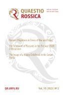 «Quaestio Rossica» - рецензируемый научный журнал, публикующий результаты исследований в области истории, и культуры России. <...> Цель журналапоиск новых научных направлений в гуманитарном изучении России; знакомство специалистов в области истории, литературоведения, лингвистики, искусствоведения, культурологии с россиеведческими исследованиями по всему миру; консолидация сил ученых-россиеведов из разных стран мира. <...>