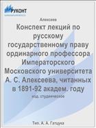 Алексеев, А.С. Конспект лекций по русскому государственному праву ординарного профессора Императорского Московского университета А. С. Алексеева, читанных в 1891-92 академ. году : изд. студенческое / А.С. Алексеев .— : Тип. А. А. Гатцука, 1892 .— 487 с. — URL: https://rucont.ru/efd/50147 (дата обращения: 08.11.2025)