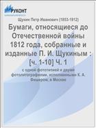 Щукин Петр Иванович (1853-1912). Бумаги, относящиеся до Отечественной войны 1812 года, собранные и изданные П. И. Щукиным : [ч. 1-10] Ч. 1 : с одной фототипией и двумя фотолитографиями, исполненными К. А. Фишером, в Москве / Щукин Петр Иванович (1853-1912) .— : [Б.и.], 1897 .— 173 с. : ил. — URL: https://rucont.ru/efd/50782 (дата обращения: 07.11.2025)