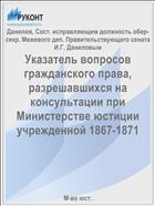 Данилов, И.Г. Указатель вопросов гражданского права, разрешавшихся на консультации при Министерстве юстиции учрежденной 1867-1871 / Сост. исправляющим должность обер-секр. Межевого деп. Правительствующего сената И.Г. Даниловым; И.Г. Данилов .— : М-во юст., 1873 .— 399 с. — URL: https://rucont.ru/efd/58334 (дата обращения: 10.11.2025)