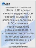 Вербловский, Г.Л. Закон: I. Об отмене личного задержания, как способа взыскания с неисправных должников. II. Об изменении постановлений об узаконенном росте, с изложением текста статей, на которые сделаны указания в законе, и с некоторыми разъяснениями / [Соч.] Г. Вербловского; Г.Л. Вербловский .— : скоропеч. В.И. Исаева, 1879 .— 46 с. — URL: https://rucont.ru/efd/58456 (дата обращения: 09.11.2025)