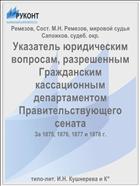 Ремезов, М.Н. Указатель юридическим вопросам, разрешенным Гражданским кассационным департаментом Правительствующего сената : За 1875, 1876, 1877 и 1878 г. / Сост. М.Н. Ремезов, мировой судья Сапожков. судеб. окр.; М.Н. Ремезов .— : типо-лит. И.Н. Кушнерева и К°, 1879 .— 483 с. — URL: https://rucont.ru/efd/59286 (дата обращения: 10.11.2025)