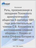 Кохомский, С.В. Речь, произнесенная в заседании Псковского археологического общества 8 сентября 1881 года действительным членом С.В. Кохомским в воспоминание славной обороны г. Пскова от войск Стефана Батория в 1581 году / С.В. Кохомский .— : тип. Губ. правл., 1881 .— 21 с. — URL: https://rucont.ru/efd/59408 (дата обращения: 06.11.2025)