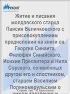 Житие и писания молдавского старца Паисия Величковского с присовокуплением предисловий на книги св. Георгия Синаита, Филофея Синайского, Исихия Пресвитера и Нила Сорского, сочиненных другом его и спостником, старцем Василием Поляномерульским о умном трезвении и молитве .— : "Славян. тип." Н. Хрисогелос, 1886 .— 104 с. — URL: https://rucont.ru/efd/59751 (дата обращения: 10.11.2025)