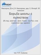 Борьба школы еъ пьянетвомъ. <...> —Предстоящія затрудненія въ борьб школы съ пьянствомъ. <...> Частныя ііедагогическія м ры для прохожденіи программъ: а) по Закону Божію; б) русской грамматик и словесносіи; в) всеобщей и русской исторіи; г) математик , и д) географіи. <...> —Заключеш , Вопросъ 0 педагогическомъ возд йствіи на учащихся въ школ для предохраненія пхъ отъ развитія привычки къ употребленію кр пкихъ ііапитковъ н давно возбужденъ Комиссіей, состоящей при Русскомъ Обществ охрапенія народнаго здравія. <...> Въ декабр прошлаго года въ одномъ изъ зас даній этой Комиссіи былъ лрочитанъ графомъ Скаржинскимъ докладъ объ «антиалкоголжзм въ школахъ»: въ немъ, между прочимъ, выясненъ весь • вредъ отъ употребленія спиртныхъ напитковъ, указано на правительственное и общественное движеніе противъ пьянства въ государствахъ Западной Европы, перечисленъ рядъ м ръ, какія таиъ предпринимаются противъ алкоголизма; въ доклад высказаны пожеланія, чтобы и въ Россіи пріім нялись н которыя изъ нихъ противъ этого бича челов чества. <...> Докладчикъ пришелъ къ выводу, что для искорененія пьяиства въ народ необходимо прежде всего перестать пить просв щениымъ и руководящимъ классамъ, a чтобы достичь этого, сл дуетъ ознакомлять учащихся на школьной скамь со вс ми гибельными посл дствіями пьянства. <...> Наше мн ніе и пожеланія по сему предмету и составляіотъ содержаніе педагогическихъ зам токъ: «Борьба школы съ пьяиствомъ». <...> Педагогъ, желая предохраыить учащихся отъ развитія въ нихъ наклонности къ употребленіі <...>