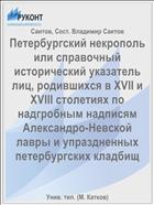 Саитов, В.И. Петербургский некрополь или справочный исторический указатель лиц, родившихся в XVII и XVIII столетиях по надгробным надписям Александро-Невской лавры и упраздненных петербургских кладбищ / Сост. Владимир Саитов; В.И. Саитов .— : Унив. тип. (М. Катков), 1883 .— 160 с. — URL: https://rucont.ru/efd/65365 (дата обращения: 12.11.2025)
