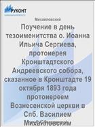 Михайловский, В.Я. Поучение в день тезоименитства о. Иоанна Ильича Сергиева, протоиерея Кронштадтского Андреевского собора, сказанное в Кронштадте 19 октября 1893 года протоиереем Вознесенской церкви в Спб. Василием Михайловским / В.Я. Михайловский .— : тип. Е.А. Поздняковой, 1893 .— 18 с. — URL: https://rucont.ru/efd/65524 (дата обращения: 08.11.2025)