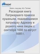Расходная книга Патриаршего приказа кушаньям, подававшимся патриарху Адриану и разного чина лицам с сентября 1698 по август 1699 г. / Напеч. под ред. А.А. Титова .— : Вахрамеев, 1890 .— 362 с. — URL: https://rucont.ru/efd/65691 (дата обращения: 12.11.2025)