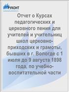 Отчет о Курсах педагогических и церковного пения для учителей и учительниц школ церковно-приходских и грамоты, бывших в г. Вологде с 1 июля до 9 августа 1898 года, по учебно-воспитательной части .— : [Б.и.], 1898 .— 33 с. — URL: https://rucont.ru/efd/65851 (дата обращения: 08.11.2025)