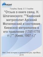 Голубев, С.Т. "Отзыв о книге свящ. Н. Шпачинского: ""Киевский митрополит Арсений Могилянский и состояние Киевской митрополии в его правление (1757-1770 гг.)"" (Киев, 1907 г.)" / Проф. С.Т. Голубев; С.Т. Голубев .— : Имп. О-во истории и древностей рос. при Моск. ун-те, 1909 .— 25 с. — URL: https://rucont.ru/efd/69700 (дата обращения: 08.11.2025)