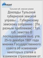 Тульская губ. земская управа. Доклады Тульской губернской земской управы ... Губернскому земскому собранию : [По разным проблемам] / Тул. губ. земство О последовавшем выс. утв. 25-го декабря 1901 года мнении Государственного совета об изменении некоторых статей о взаимном страховании от огня / Тульская губ. земская управа .— : [Б.и.], 1902 .— 41 с. — URL: https://rucont.ru/efd/71358 (дата обращения: 11.11.2025)