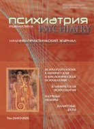 | Аннотация | Журнал «Психиатрия» основан в 2002 году по инициативе академика РАН А.С.Тиганова. С 2008 г. журнал входит в «Перечень рецензируемых научных журналов».
