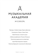 «Музыкальная академия» — ежеквартальный научный и критико-публицистический журнал о музыке. Тематика статей, публикуемых в журнале, охватывает все области исследования, относящиеся к специальности 17.00.02 — музыкальное искусство.