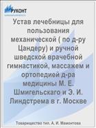 Устав лечебницы для пользования механической ( по д-ру Цандеру) и ручной шведской врачебной гимнастикой, массажем и ортопедией д-ра медицины М. Е. Шмигельскаго и Э. И. Линдстрема в г. Москве .— : Товарищество тип. А. И. Мамонтова, 1903 .— 9 с. — URL: https://rucont.ru/efd/80905 (дата обращения: 07.11.2025)