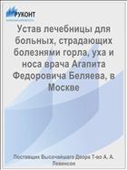 Устав лечебницы для больных, страдающих болезнями горла, уха и носа врача Агапита Федоровича Беляева, в Москве (60,00 руб.)