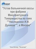 "Устав больничной кассы при фабрике Мануфактурнаго Товарищества на паях ""Наследники И.И. Дунаева"", в Москве" .— : Типо-Литогр. "Печатник", 1913 .— 31 с. — URL: https://rucont.ru/efd/82074 (дата обращения: 07.11.2025)
