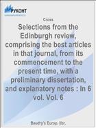 Cross, M. Selections from the Edinburgh review, comprising the best articles in that journal, from its commencement to the present time, with a preliminary dissertation, and explanatory notes : In 6 vol. Vol. 6 / M. Cross .— : Baudry's Europ. libr., 1836 .— 415 с. — Lang: eng .— URL: https://rucont.ru/efd/85623 (дата обращения: 10.11.2025)